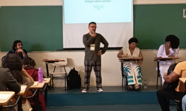 Na sequência, a mesa “RAPS e Redução de Danos: contos reais de práticas de criatividade e cuidado” apresentou experiências ligadas ao trabalho na Rede de Atenção Psicossocial (RAPS). Luiza Ribeiro (Terapeuta Ocupacional CAPSI – SP)destacou a importância da aliança comunitária e criticou os impactos da terceirização nos serviços de saúde. Fernando Meira (Médico de Família – BA), médico de família, relatou desafios enfrentados com moradores de rua e adolescentes, defendendo o vínculo como essência do cuidado. Daniel de Souza relatou as ações do Consultório na Rua, entidade que atua, que incluem oficinas e eventos culturais para fortalecer laços comunitários. O mediador Daniel Elia (PDHSM – Fiocruz)ressaltou que a relação com o território é um dos pontos centrais no trabalho e no cuidado.